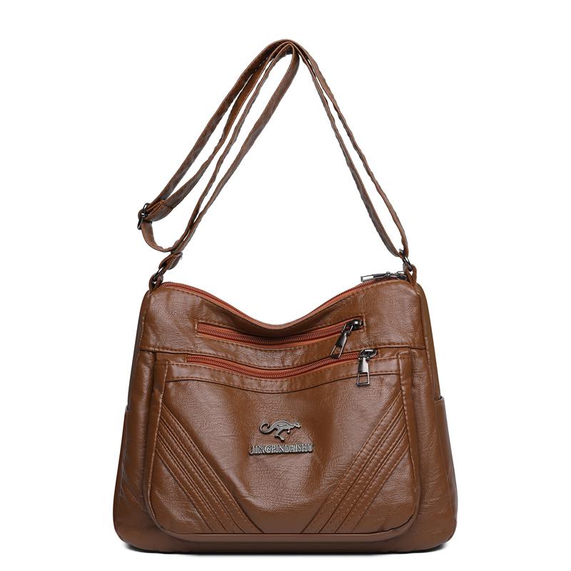Простая универсальная сумка через плечо с несколькими отделениями, большой вместимости, для мам среднего и пожилого возраста коричневый