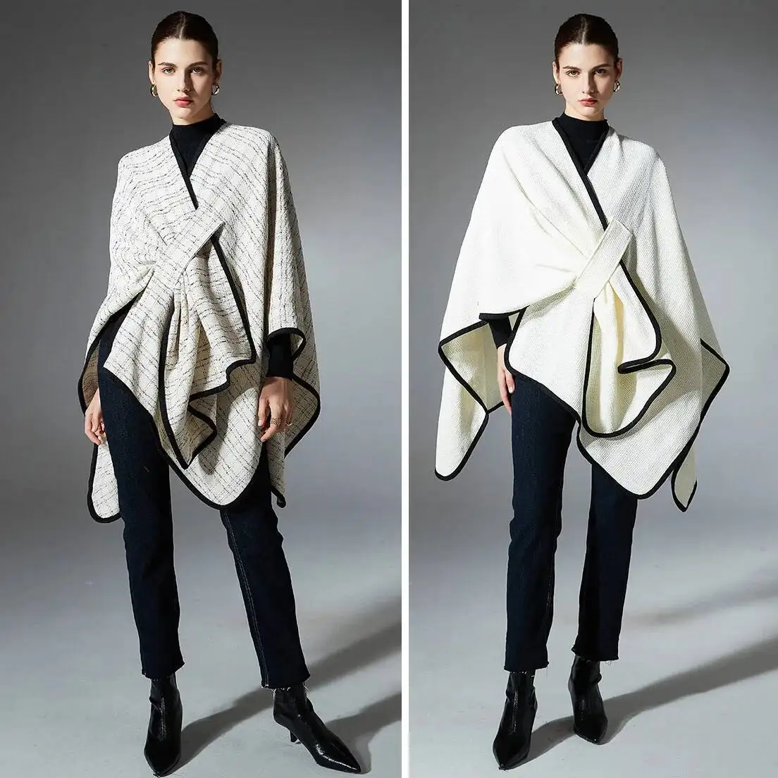 Простая элегантная накидка в западном стиле с ремешком-пончо, женское весенне-осеннее зимнее пальто средней длины, праздничное платье, накидки