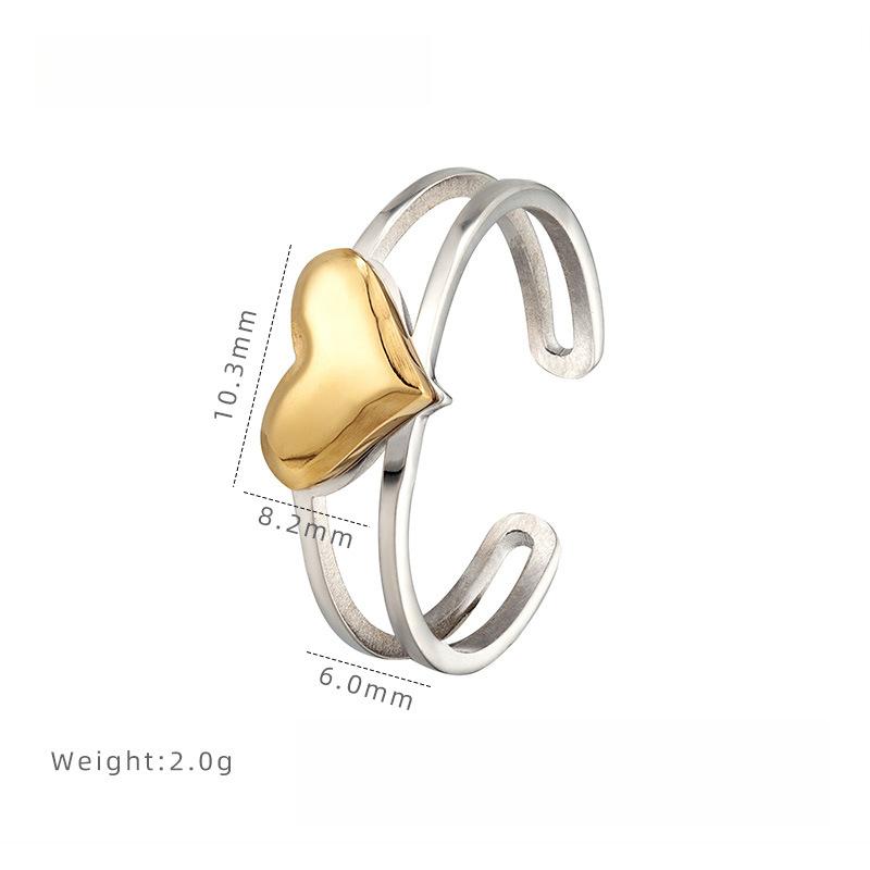 Простое Любовное Контрастное Открытое Кольцо Женское Нишевое Штабелируемое Кольцо Гальванизированная Титановая Сталь Невыцветающая Бижутерия 9