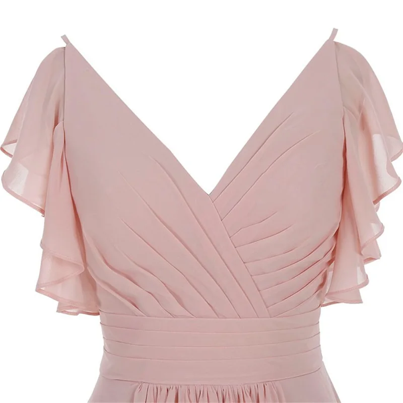 Простое Новое Вечернее платье-трапеция 2020, розовое шифоновое платье в пол с короткими рукавами и V-образным вырезом, плиссированное платье д...