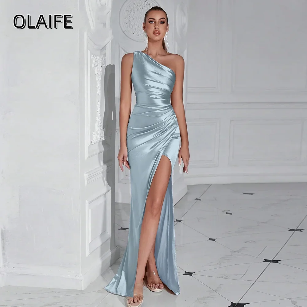 Простое атласное сексуальное вечернее платье русалки на одно плечо с высоким разрезом по бокам, без рукавов, на молнии, со шлейфом, платья de festa