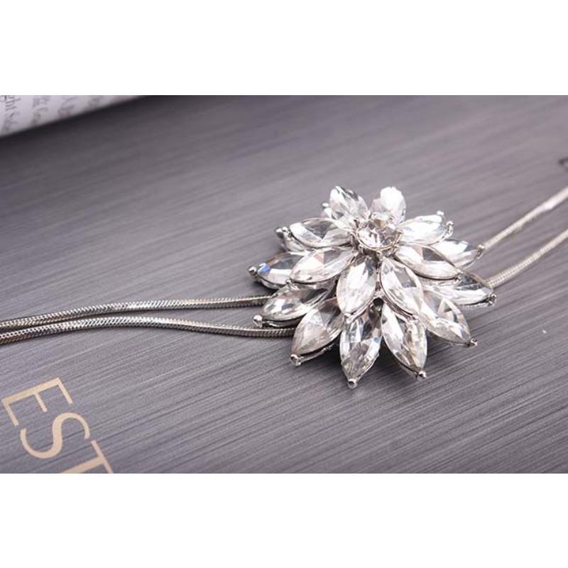 Простое и модное, длинное ожерелье с кристаллами и драгоценными камнями, декоративная цепочка для свитера