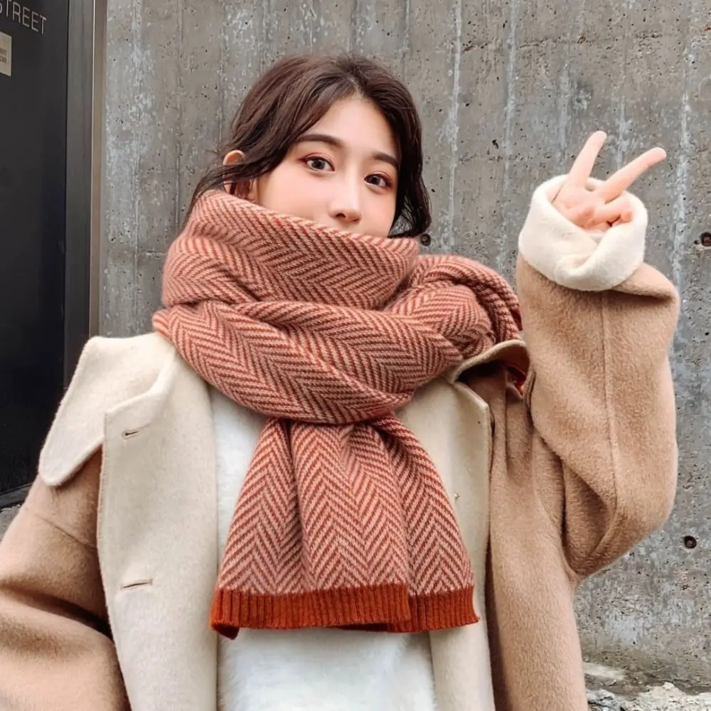 Простой плюшевый кашемировый шерстяной шарф, мягкие теплые зимние кашемировые шарфы, утепленная длинная шаль в корейском стиле для женщин