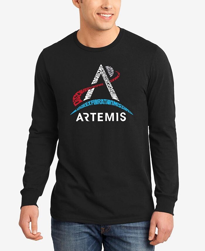 Мужская футболка с длинным рукавом и логотипом NASA Artemis Word Art LA Pop Art, черный