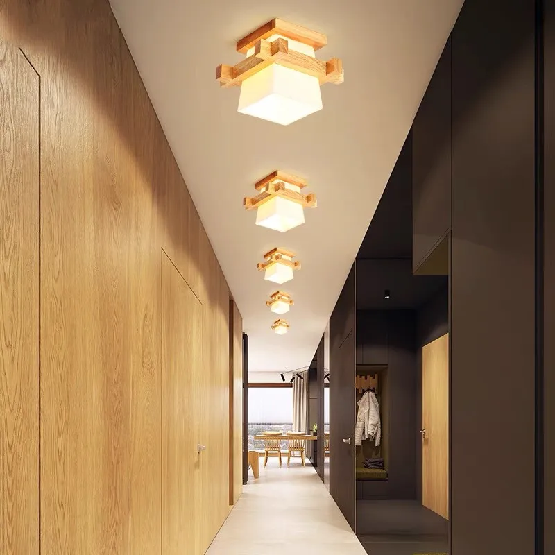 Простой современный светодиодный потолочный светильник, японская Ретро деревянная стеклянная лампа для гостиной, спальни, прихожей, крыль...