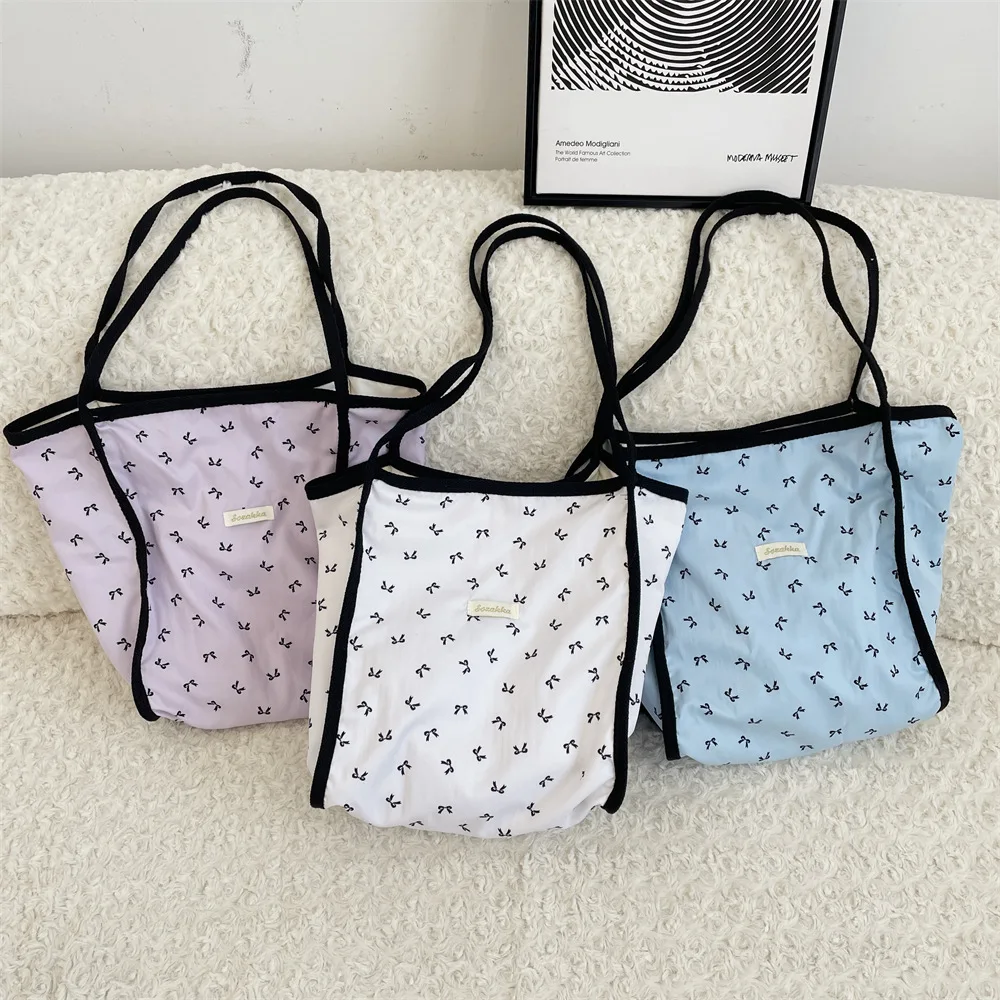 Просторная летняя большая сумка для студенток и девочек, сумка для хранения на плечо с акцентом и бантом, легкий органайзер для работы и поездок на работу, повседневная шикарная сумка