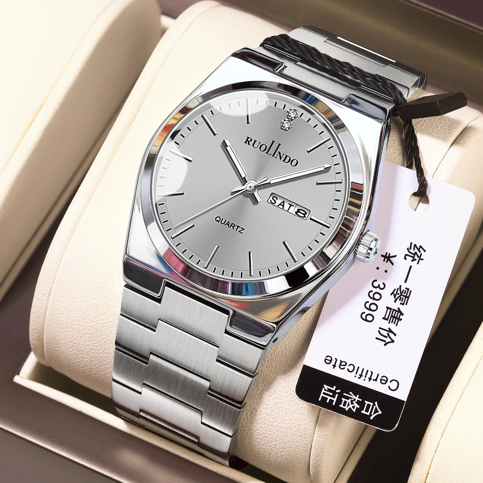 Простые модные мужские часы, водонепроницаемые стальные кварцевые наручные часы, светящаяся дата, неделя, часы из минерального стекла для мужчин, трендовая горячая распродажа
