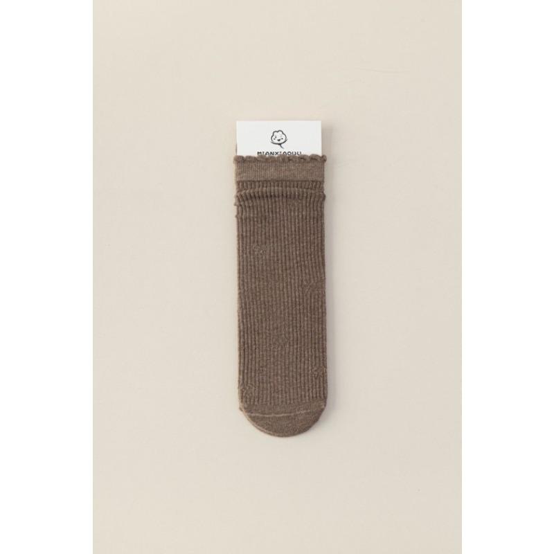 Простые носки из чистого хлопка без косточек с кружевом из черного гриба, прямые до середины икры, для осени и зимы, не сдавливающие, свободные послеродовые носки, махровые длинные носки 1 pair кофейный
