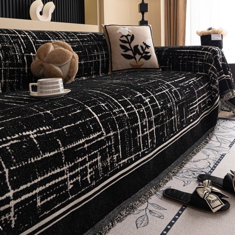 Простые и современные однотонные полотенца для дивана, всесезонная универсальная ткань для чехла дивана, цельный чехол для дивана с защитой от когтей кошек 180*130cm чёрный