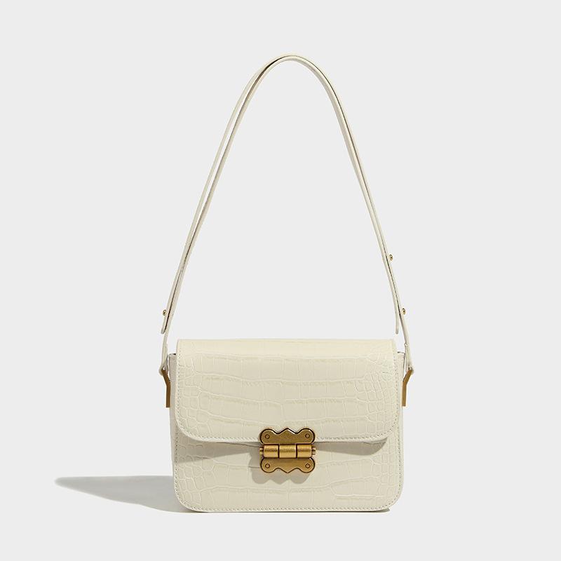 Простые сумки на ремне, женские кожаные сумки с каменным узором под подмышками, модные квадратные сумки с замком в форме пчелы (20cm<Max Length<30cm) коричневый