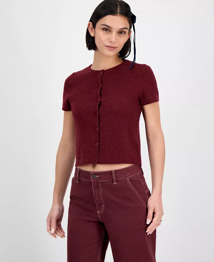 Юниорский свитер с короткими рукавами и круглым вырезом, вязаный косами Freshman, красный