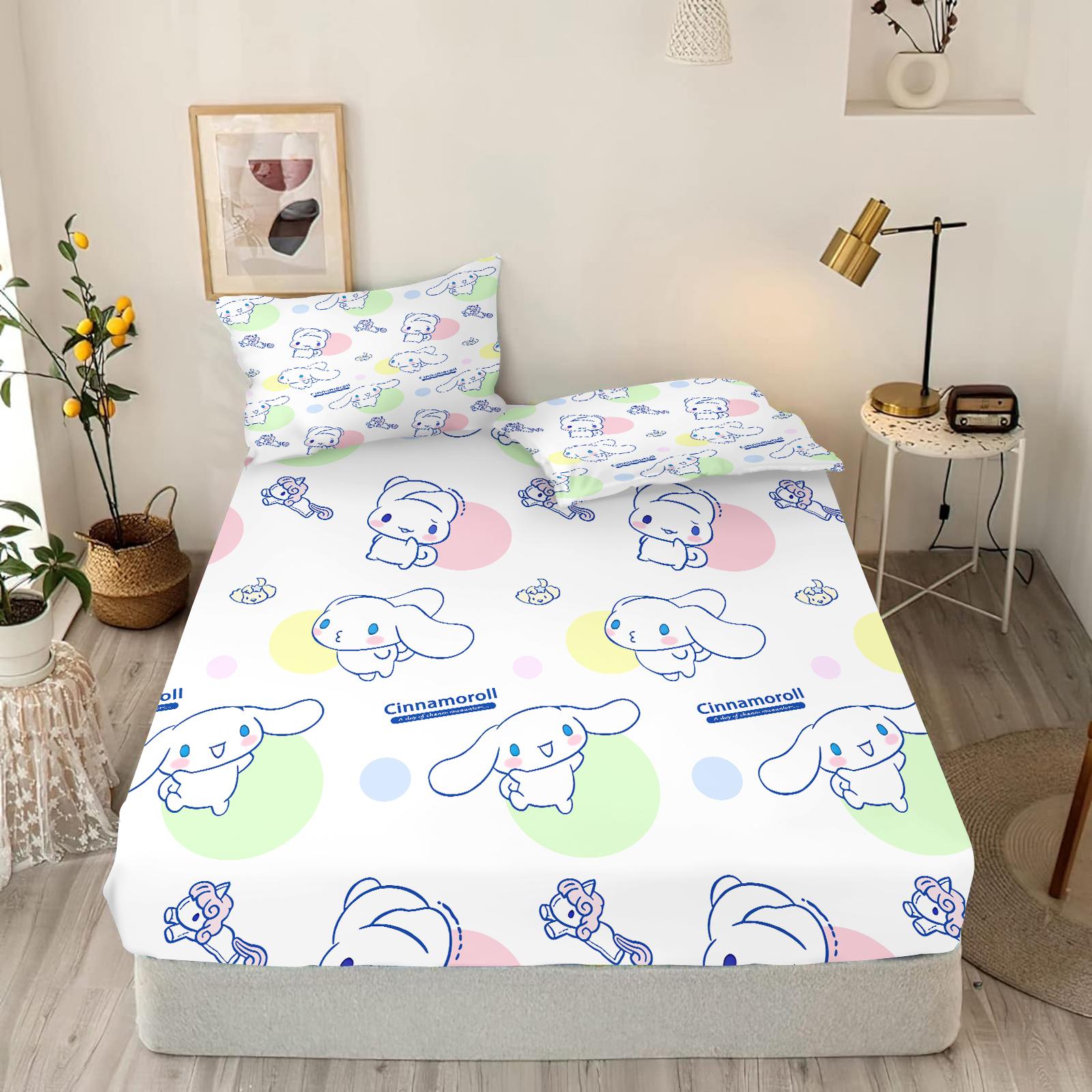 -Простыня на резинке Cinnamoroll Мультяшная Милая Принт Постельное Белье Покрывало Простыни Подросток Младенец Мягкий Для Чувствительной Кожи Эластичный 90x190cmx25cm
