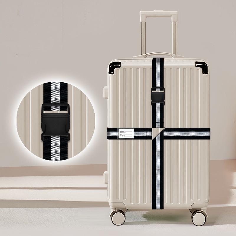 Противоударный упаковочный ремень для чемодана с пряжкой для путешествий чёрный/белый