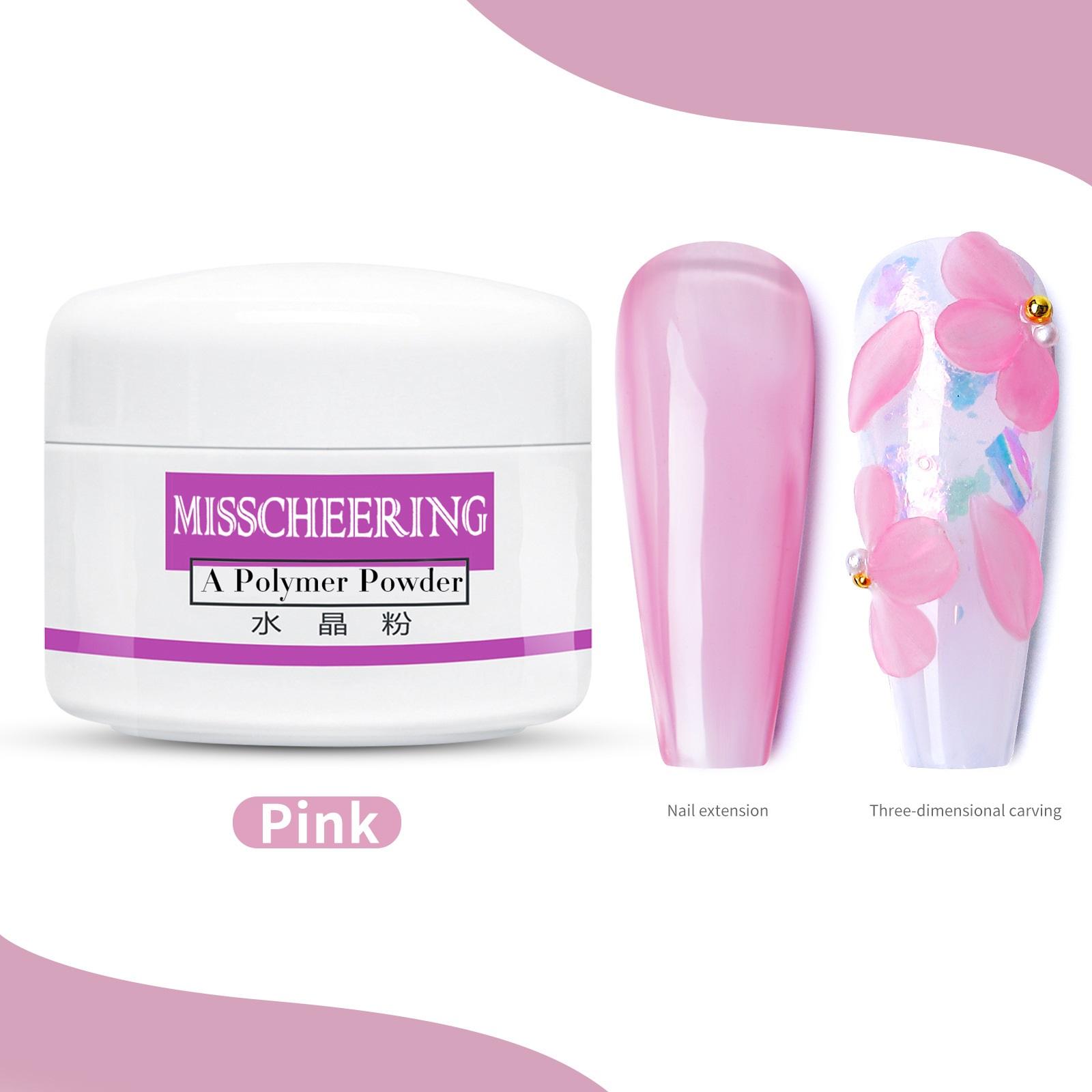 Профессиональная акриловая пудра с кристаллами для дизайна ногтей, прозрачный порошок розовый