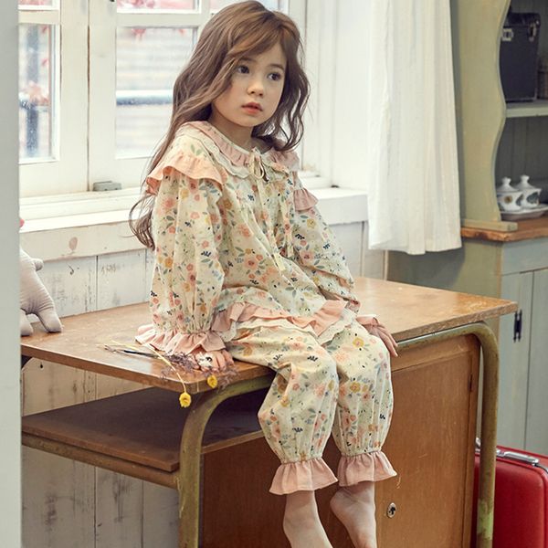 pajamas cute spring children sleepwear kid girl lolita cotton floral pajama set.vintage toddler kid flowers pyjamas set nightwear 11t 230310, Blue;red