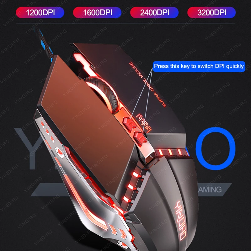 Профессиональная игровая мышь Praysong, 7 кнопок, 3200DPI, регулируемая Проводная оптическая светодиодная светодиодный ная мышь для ноутбука