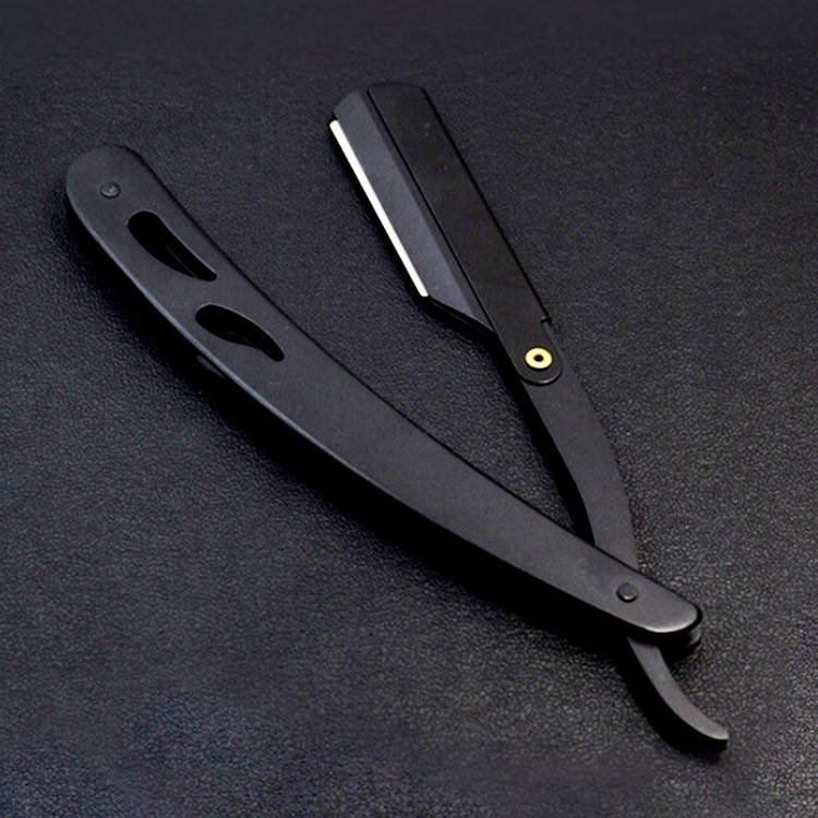 Профессиональная опасная бритва со сменным лезвием (мужская многоразовая бритва; черная сталь), Черный