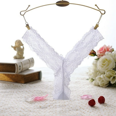BIZIZA Women Thongs Underwear Seamless Sexy Breathable Lace V String Panty White One Size