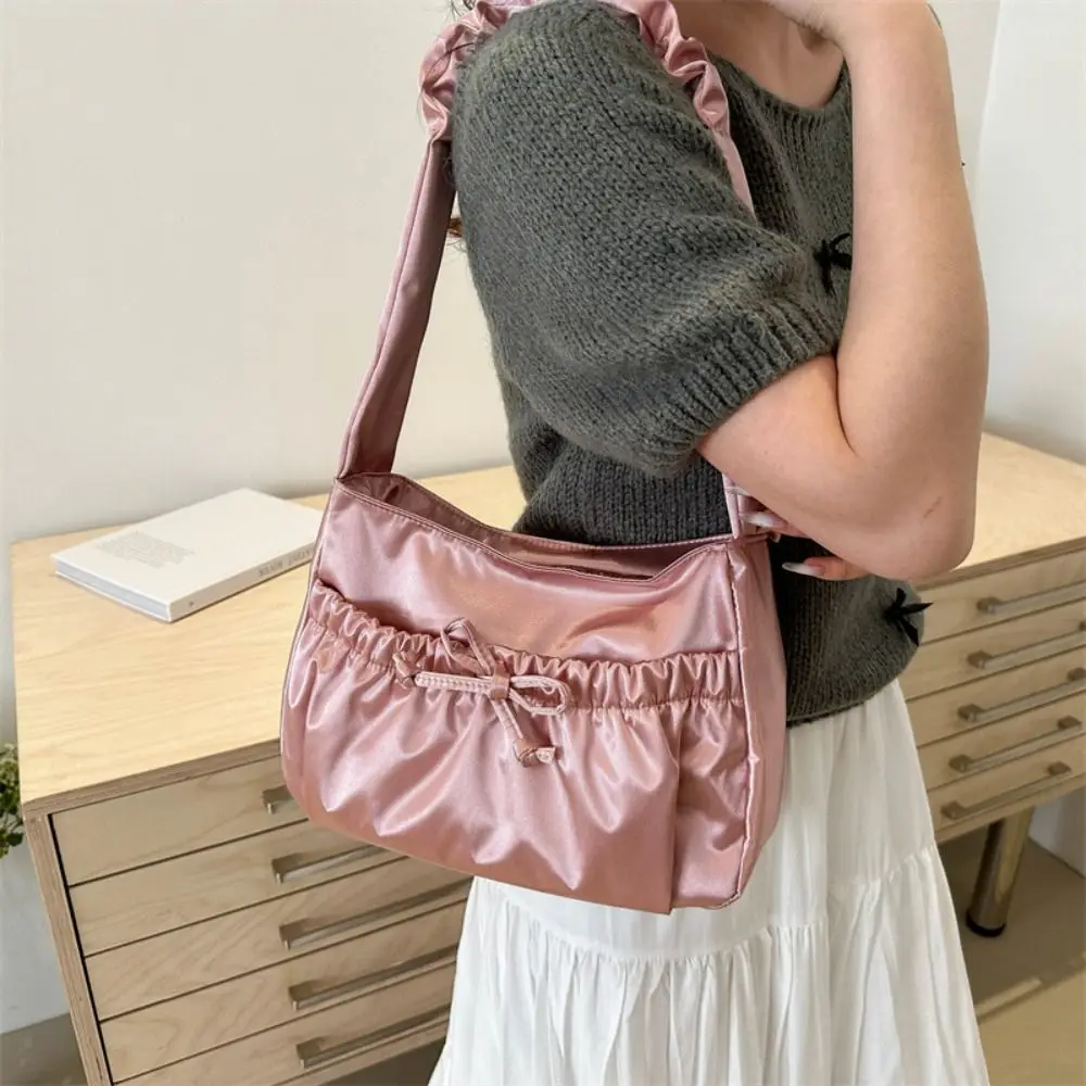 Прохладная атласная плиссированная ручная сумка в корейском стиле с бантом INS, роскошная портативная модная сумка для подмышек, уличная сумка