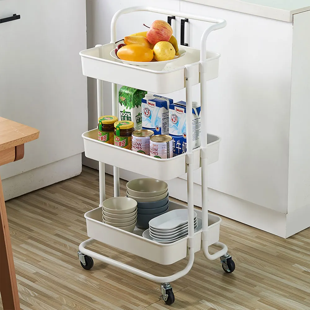 Прочная конструкция 3-х уровневая четыре колеса домашняя кухонная для хранения тележка из металла и ABS-белый в американском стиле, имеется в ...
