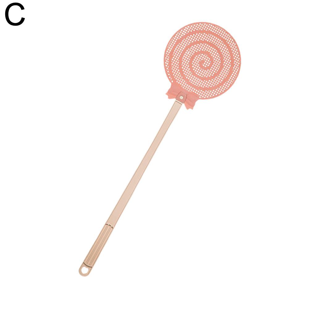 Прочная сетчатая мухобойка с пластиковой длинной ручкой, ручная многофункциональная бытовая летняя мухобойка M розовый