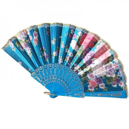 ZDMATHE Chinese/Spanish Style Dance Wedding Party Lace Silk Folding Hand Held Flower Fan