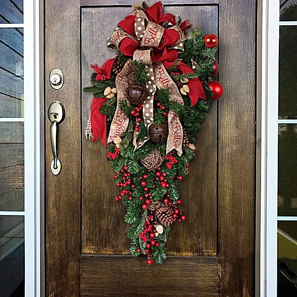 Christmas Christmas Door Wreath Plastic Handmade Christmas Hanging Ornaments American Style Half Face Tree Red Berries Wreath