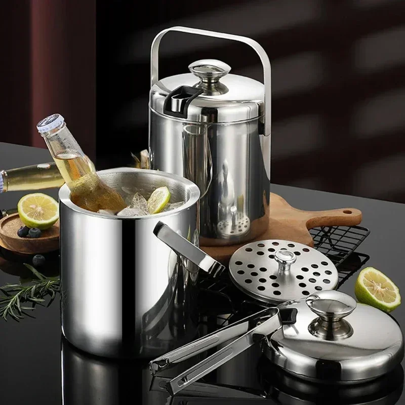 Прочный эффект, сохранение тепла, ведро для льда, ведро для льда из нержавеющей стали с крышкой на щипцы, охладитель для пива, ведро для шампанского