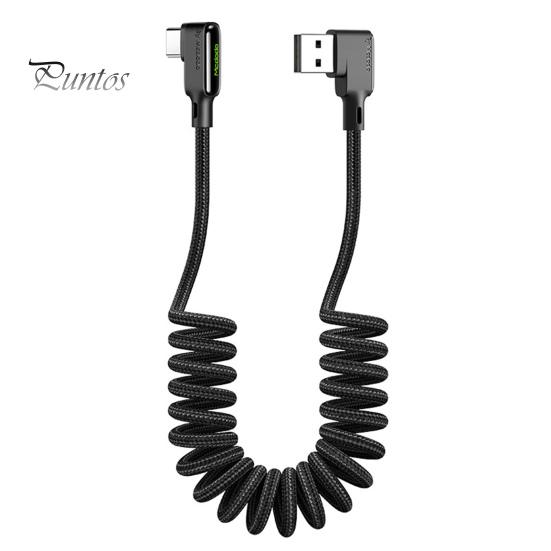 Пружинный зарядный кабель с двойным коленом QC4.0, эластичный шнур передачи данных типа C для быстрой зарядки 3A для автомобиля чёрный
