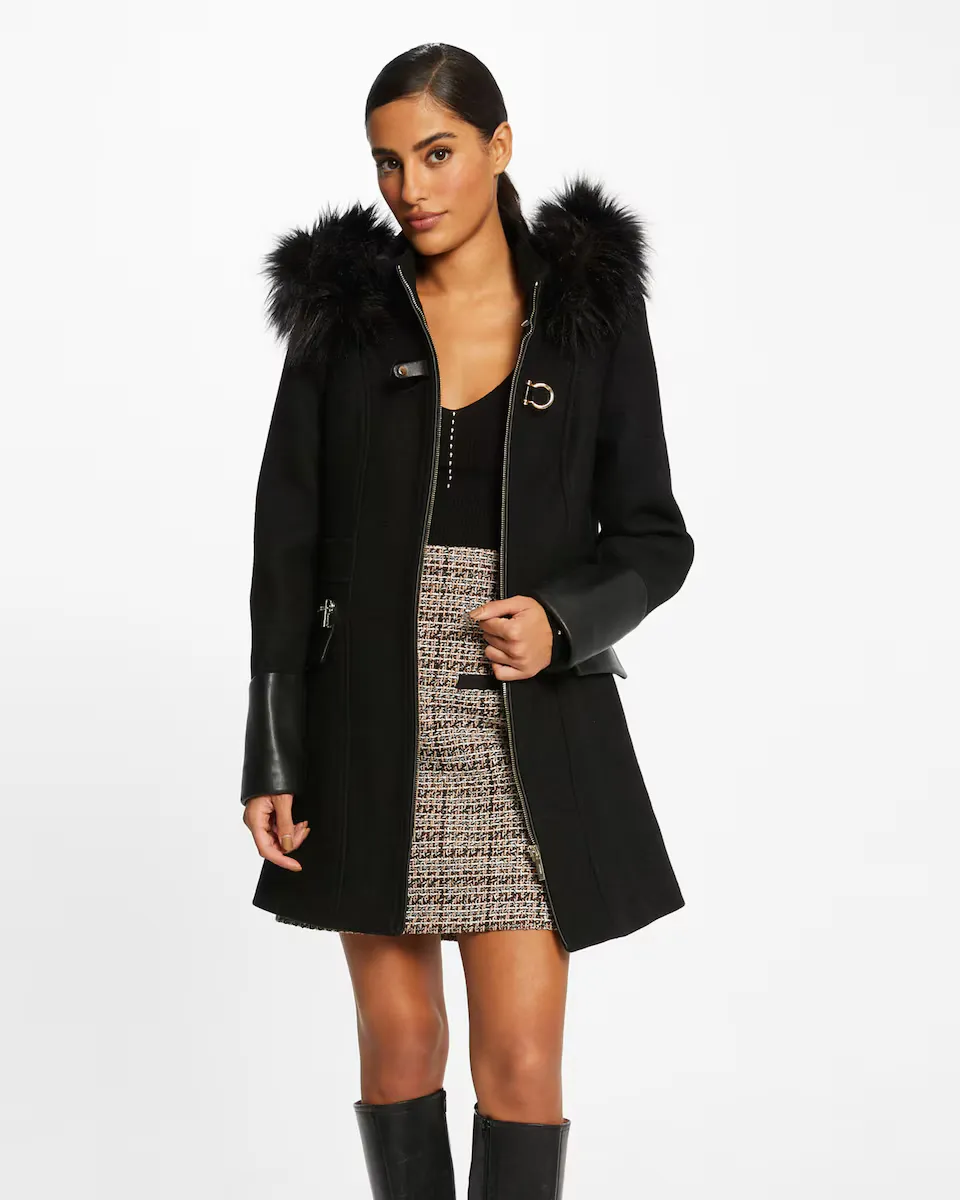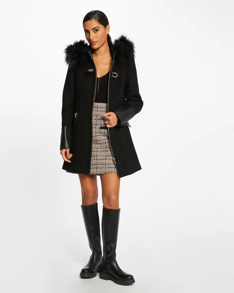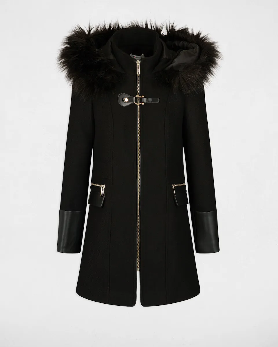 Прямое женское тканевое пальто на молнии и с капюшоном Morgan, черный