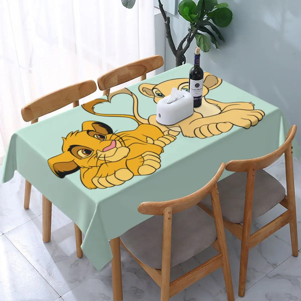 Прямоугольная Водонепроницаемая маслостойкая Скатерть с милым мультяшным рисунком Simba и Nala, подложка, эластичные окантовки, скатерть для с...