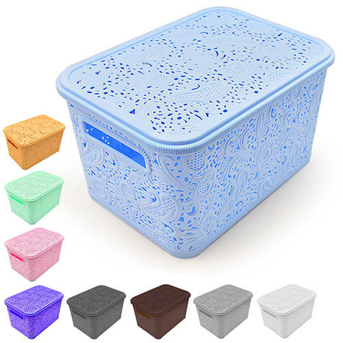 Прямоугольная ажурная корзинка с крышкой для хранения "Амелія" 30.5х20х16.5см, пластик, корзина для хранения,, Разные цвета