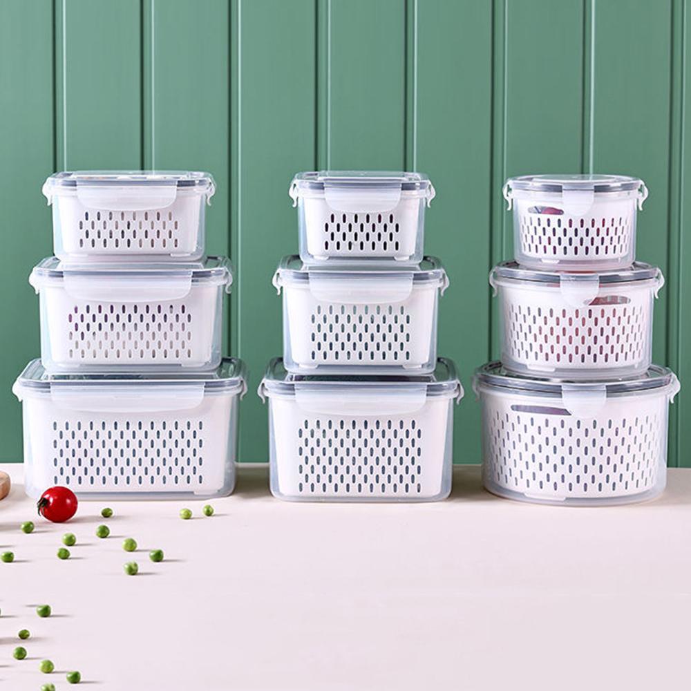 Прямоугольная/квадратная/круглая форма холодильник коробка для консервации контейнер для хранения холодильник органайзер для свежих овощей коробки с сливной корзиной и крышкой