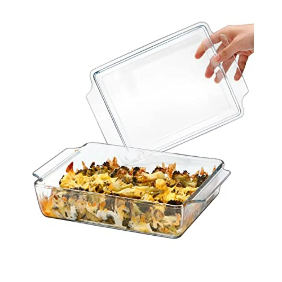 Прямоугольная стеклянная кастрюля размером 8 x 9,5 дюймов со стеклянной крышкой Стеклянная форма для выпечки на 2 литра Стеклянная кастрюля для микроволновой печи Стеклянная кастрюля