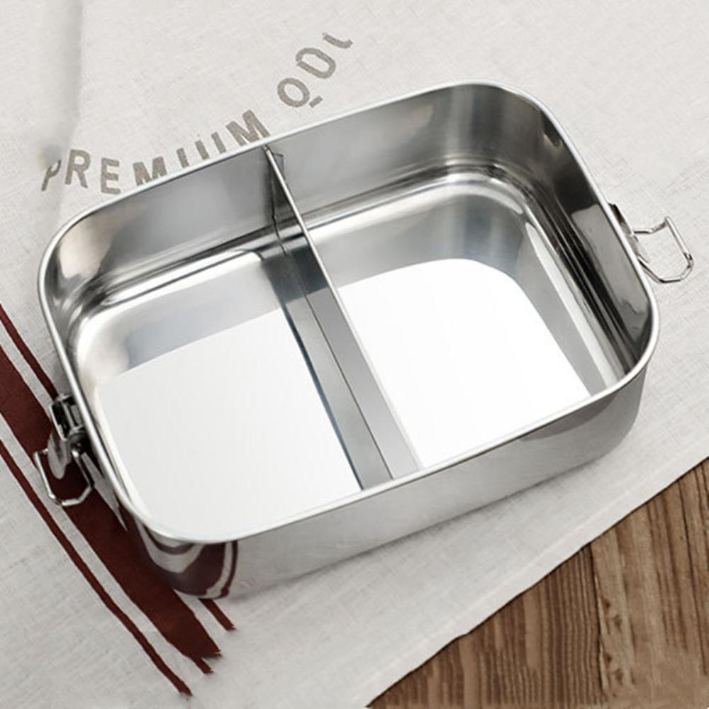 Прямоугольный контейнер для еды 1/2/3 сетки, ящик для хранения продуктов, прочный ланч-бокс из нержавеющей стали, микроволновая печь