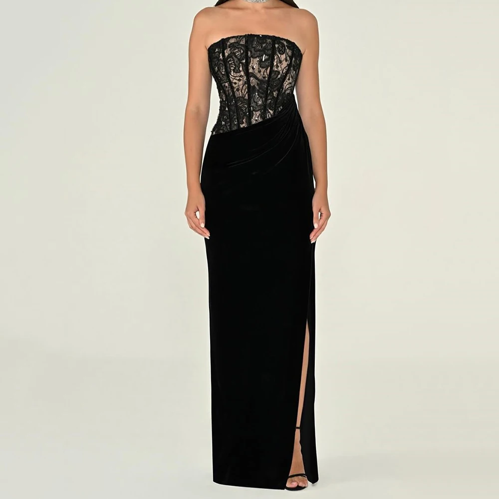 Прямые вечерние платья по индивидуальному заказу, длиной до пола, без бретелек, без рукавов, платье для выпускного вечера, модное кружевное вечернее платье с разрезом по бокам и открытой спиной