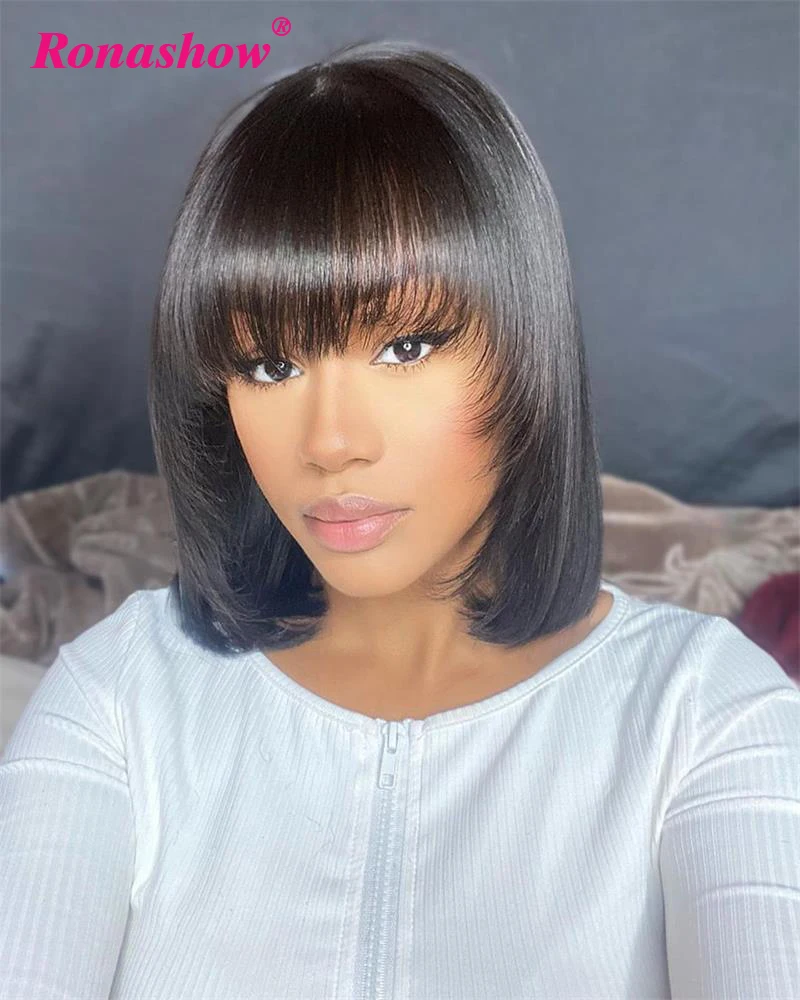 Прямые парики из человеческих волос с челкой, парик без Клея машинной работы, бразильские натуральные волосы Реми, парики боб для чернокожих женщин