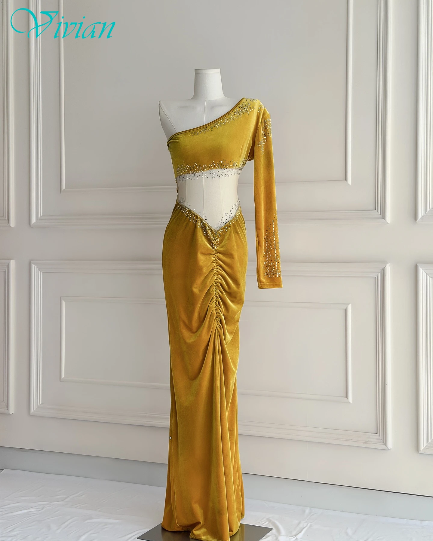 Прямые платья на одно плечо с длинными рукавами по индивидуальному заказу, элегантные платья на заказ, нежные платья знаменитостей, модное вечернее платье