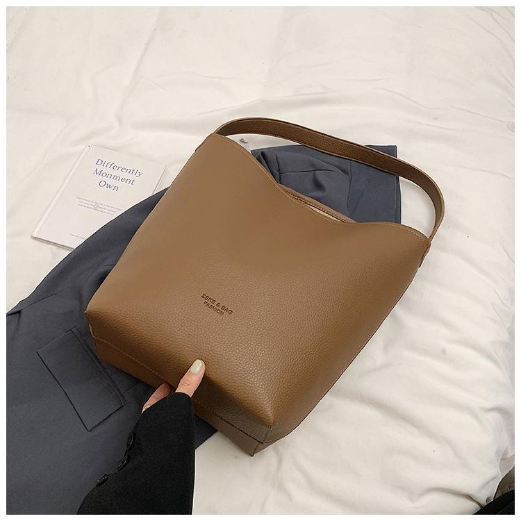 Прямые продажи в прямом эфире 2024 года, модное и изысканное чувство, простая и непринужденная атмосфера, одно плечо, портативная сумка-ведро для детей и мам. 41*15*38 коричневый