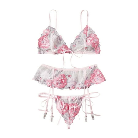 UoCefik Womens Lingerie Set Chiffon Ruffle Lingerie for Women Sexy Off the Shoulder Bra and Panty Sets M