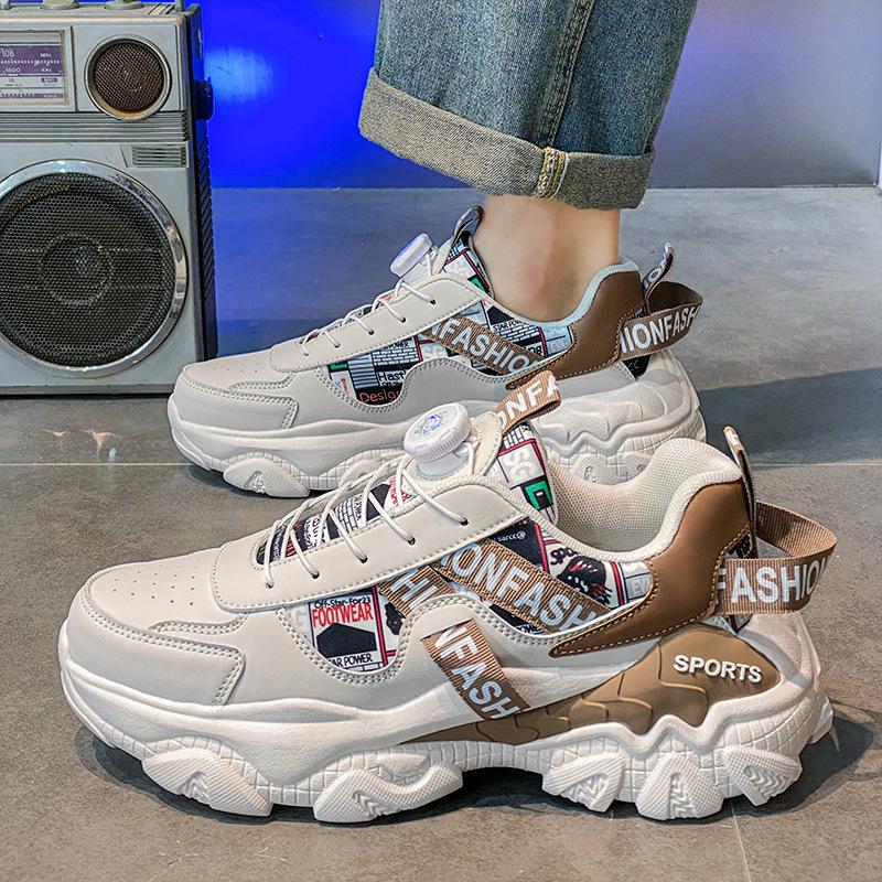 Путянь мужская обувь осень дышащая модная тенденция повседневная спортивная обувь для бега всесезонная толстая подошва увеличивающая рост обувь для папы 39 бежевый