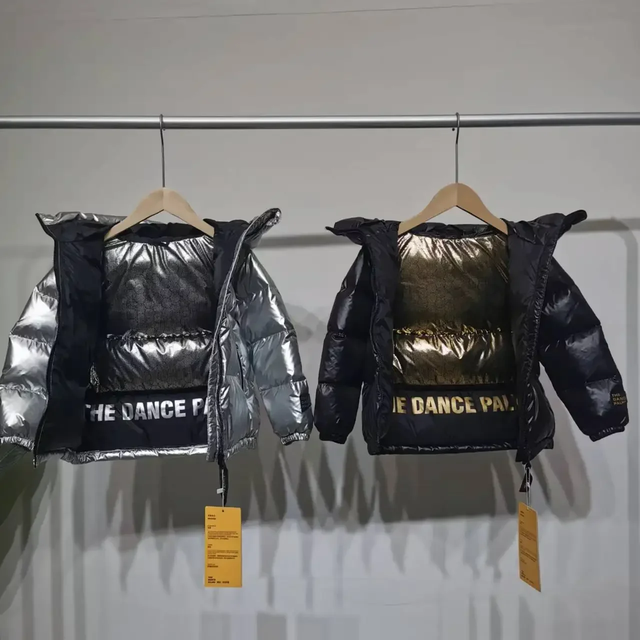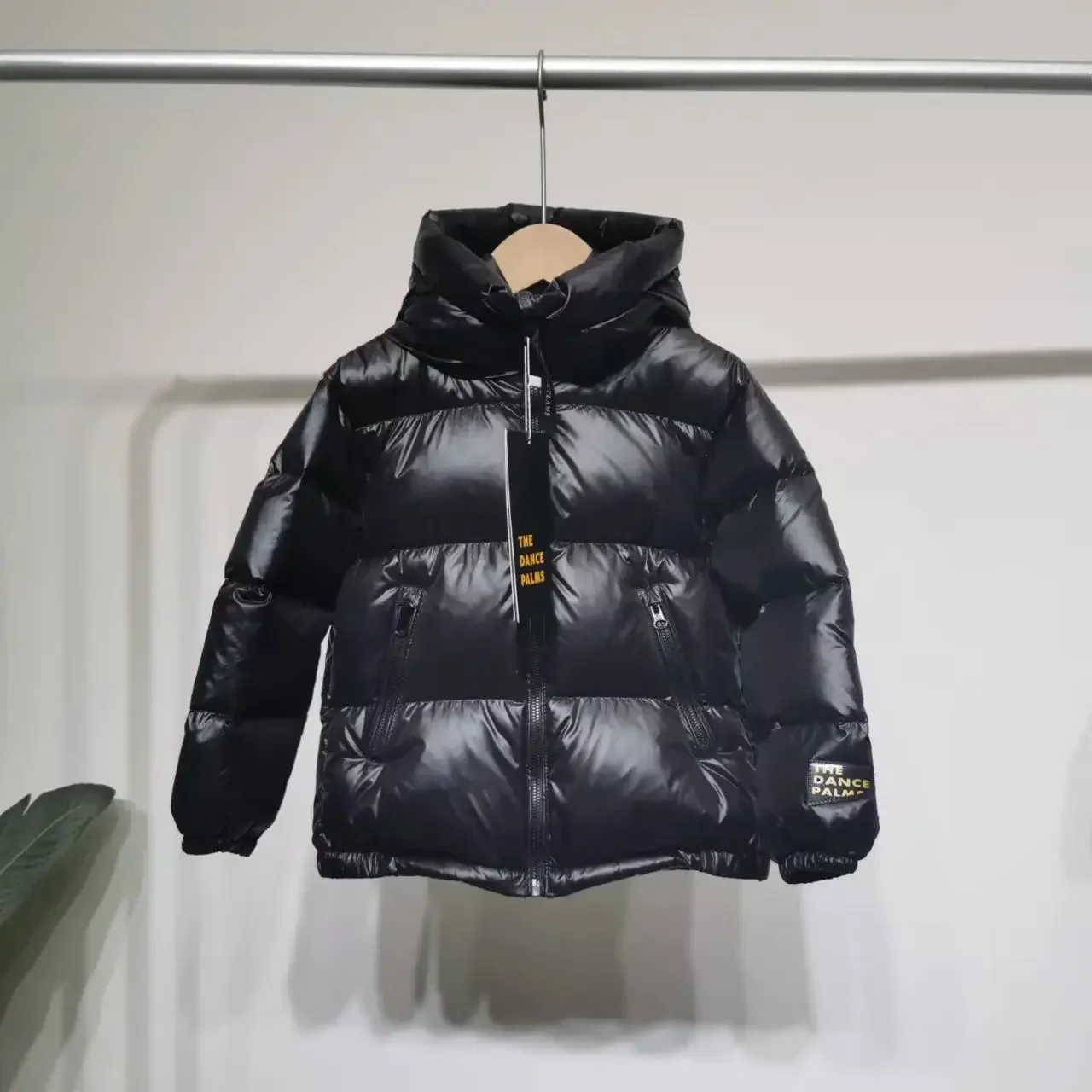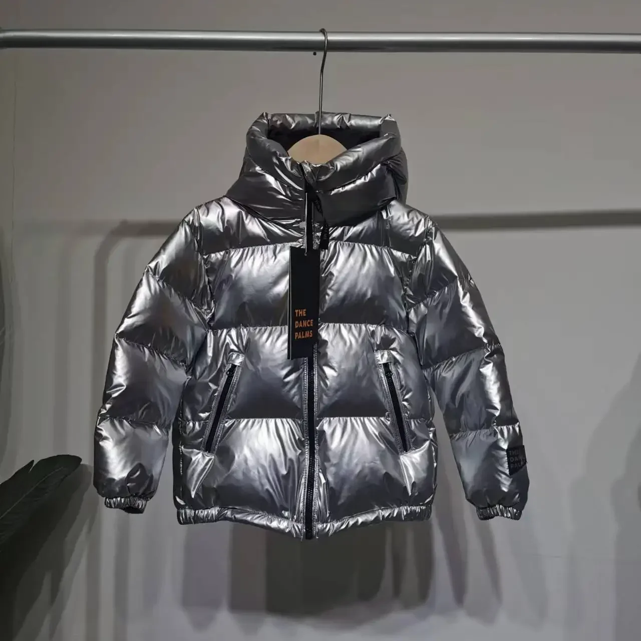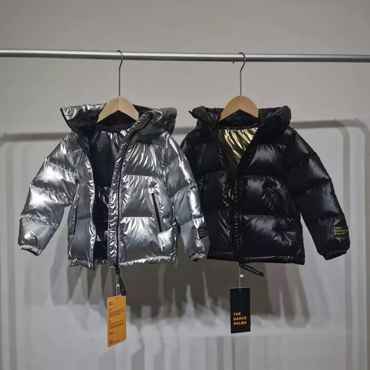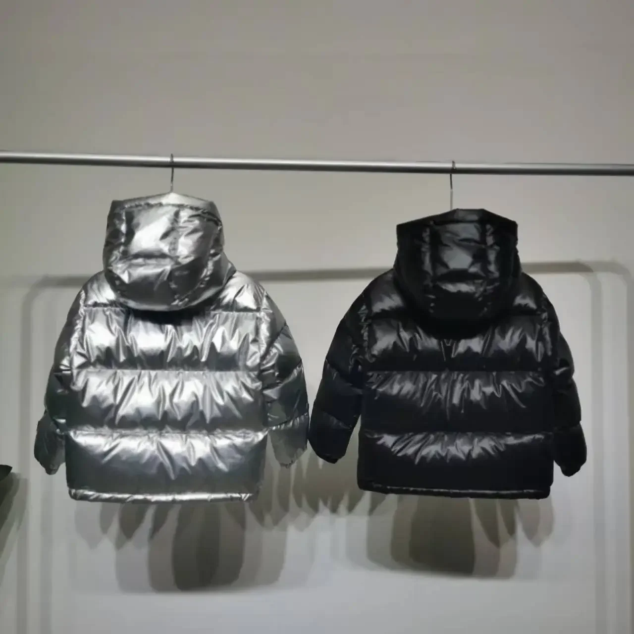 Пуховик для мальчиков и девочек, зимняя Глянцевая Водонепроницаемая парка серебристого/черного цвета с капюшоном, Свободные теплые пальто, XMP435, 2023