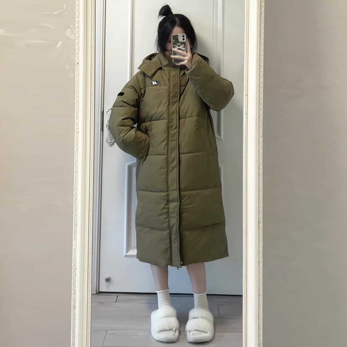 Пуховик средней длины, хлопковая куртка, женская зимняя 2025 новая студенческая свободная приталенная теплая утолщенная стеганая куртка XL хаки