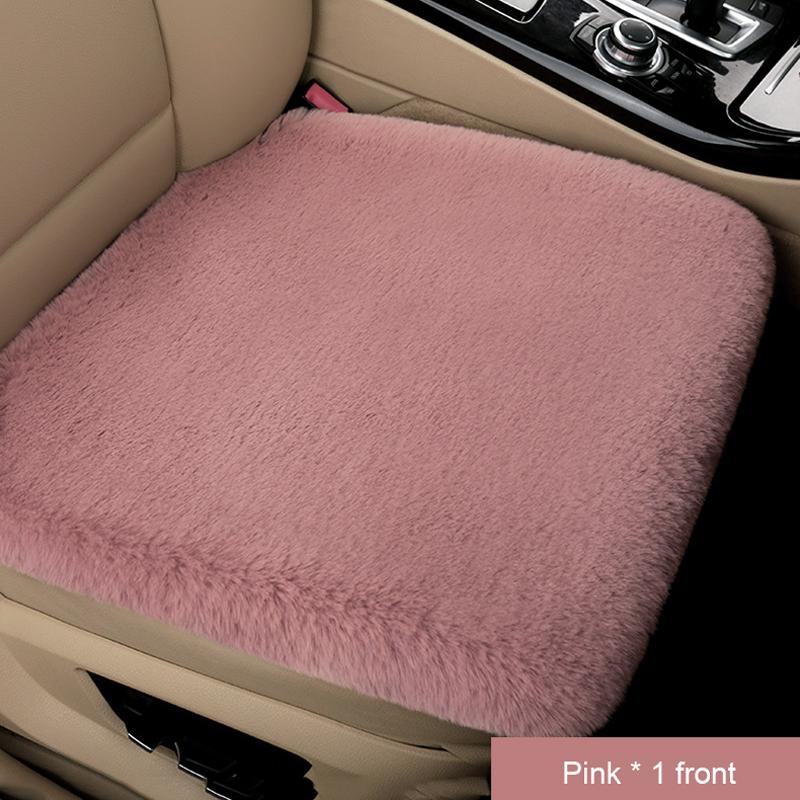 Пушистая подушка для автомобильного сиденья из искусственного кроличьего меха, теплая утолщенная зимняя накидка на автомобильное сиденье, противоскользящая, без спинки, защита автомобиля 1Front Deep Pink