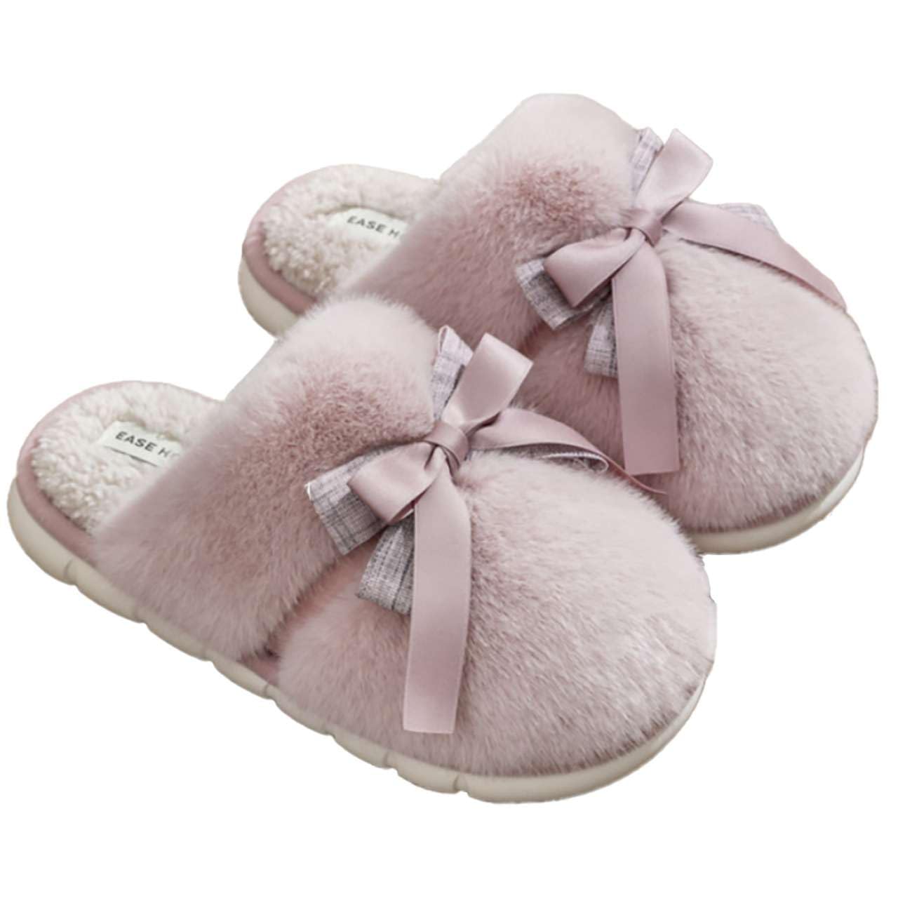 Пушистые тапочки Белый Клык с милой лентой RS014 для дома, Хлопок, Носить, Стильные, Женские (розовый) розовый