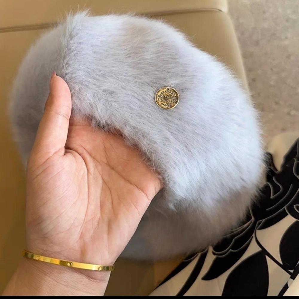 Пушистый Длинный Берет из Кроличьего Меха Женский Осенне-Зимний Маленькая Плюшевая Шляпа для Лица Большой Обхват Головы Шляпа Художника