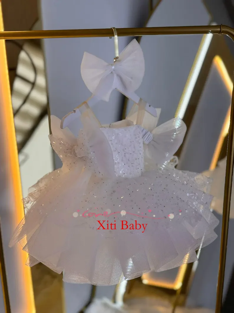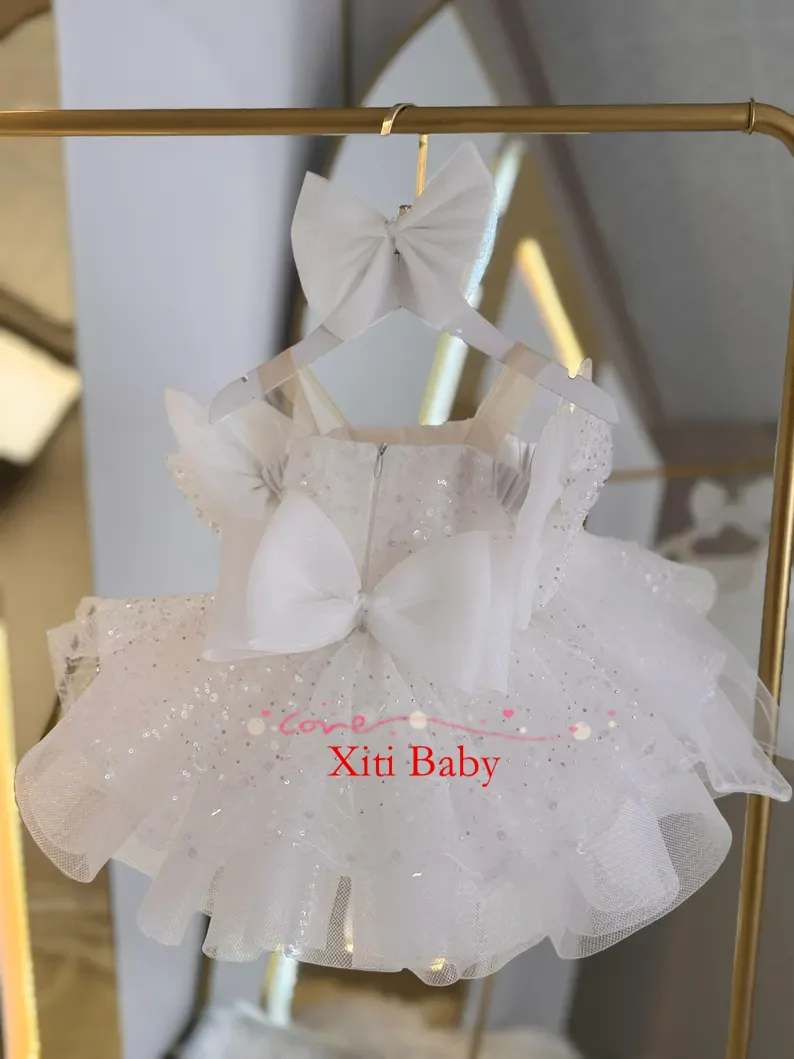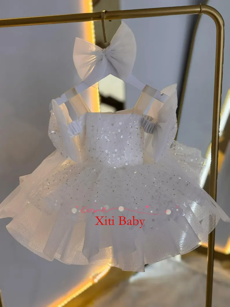Пышное сверкающее белое платье с цветочным узором для особых случаев, милое праздничное платье-пачка для маленьких девочек, короткое выпускное детское платье для выпускного вечера