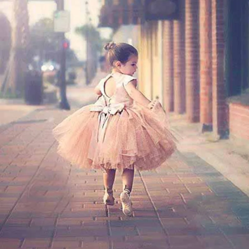 Пышные платья для девочек с рукавами 2020 ярко-розовые атласные топы Тюль-Туту-лук длиной ниже колена Цветочное платье для девочек на свадьбу