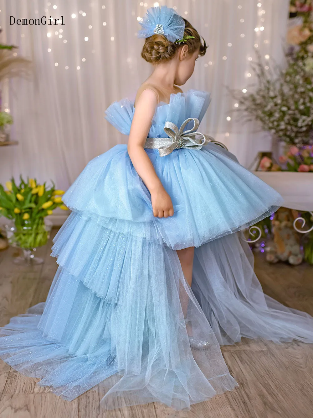 Пышные тюлевые Платья Hi Low, Стильные Детские Платья с цветочным принтом для девочек, прозрачные детские платья с открытыми плечами для первого причастия, платье для дня рождения для девочек