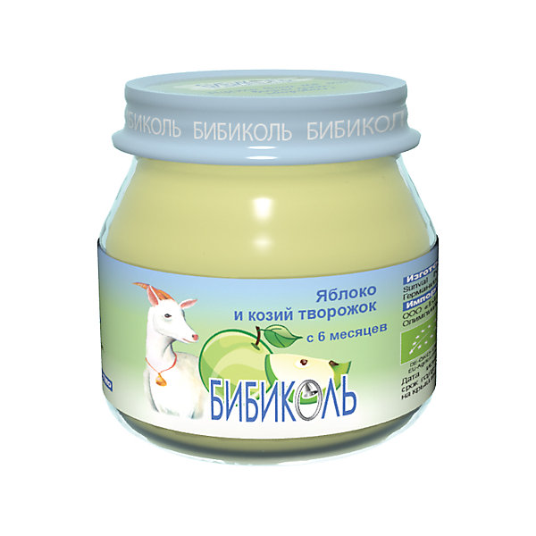 Пюре Бибиколь яблоко и козий творожок с 6 мес, 6 шт по 80 г